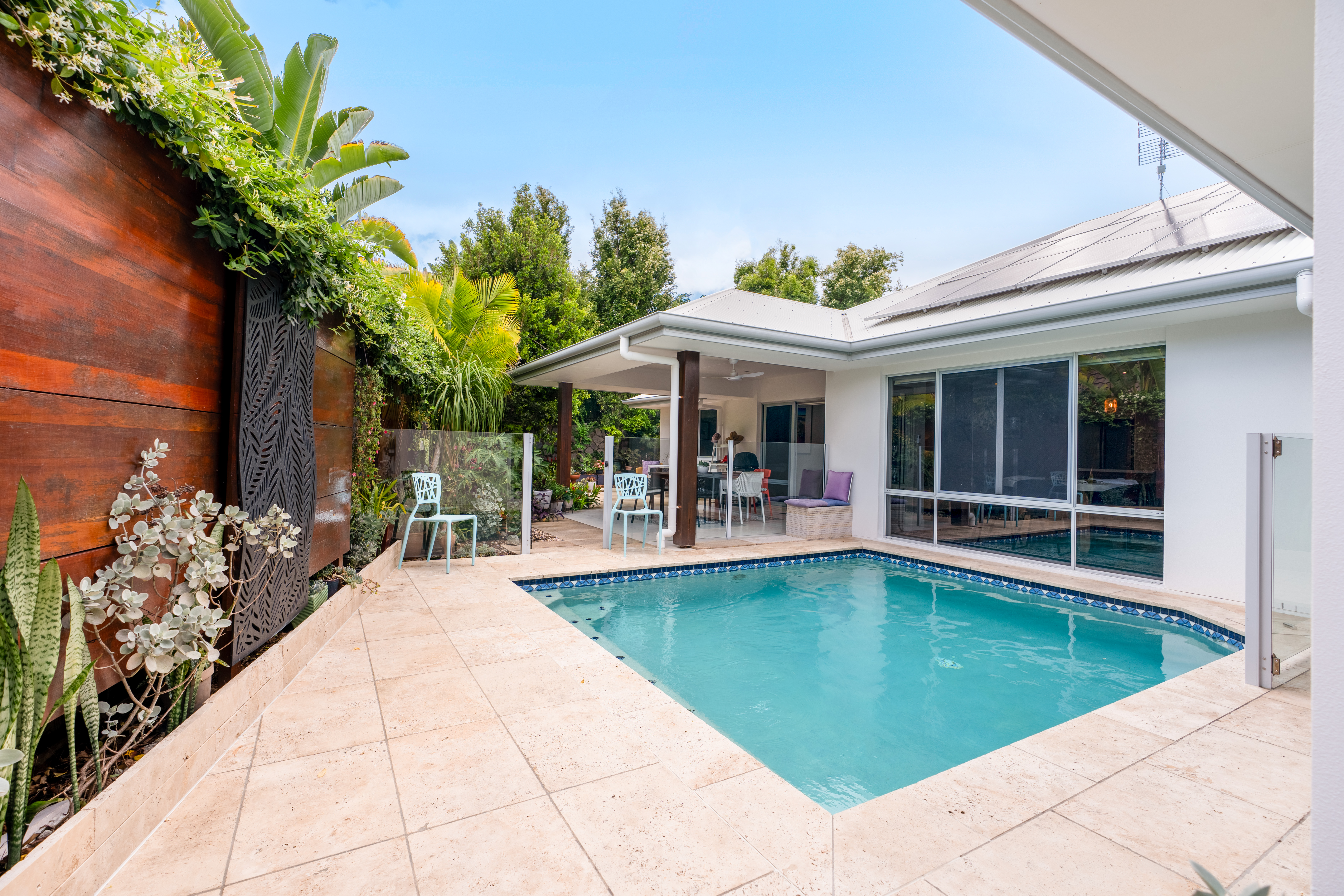 - Renewed Poolside Luxury: Sparkling saltwater pool professionally resurfaced and upgraded with Travertine tiling and new surrounding granite pavers.