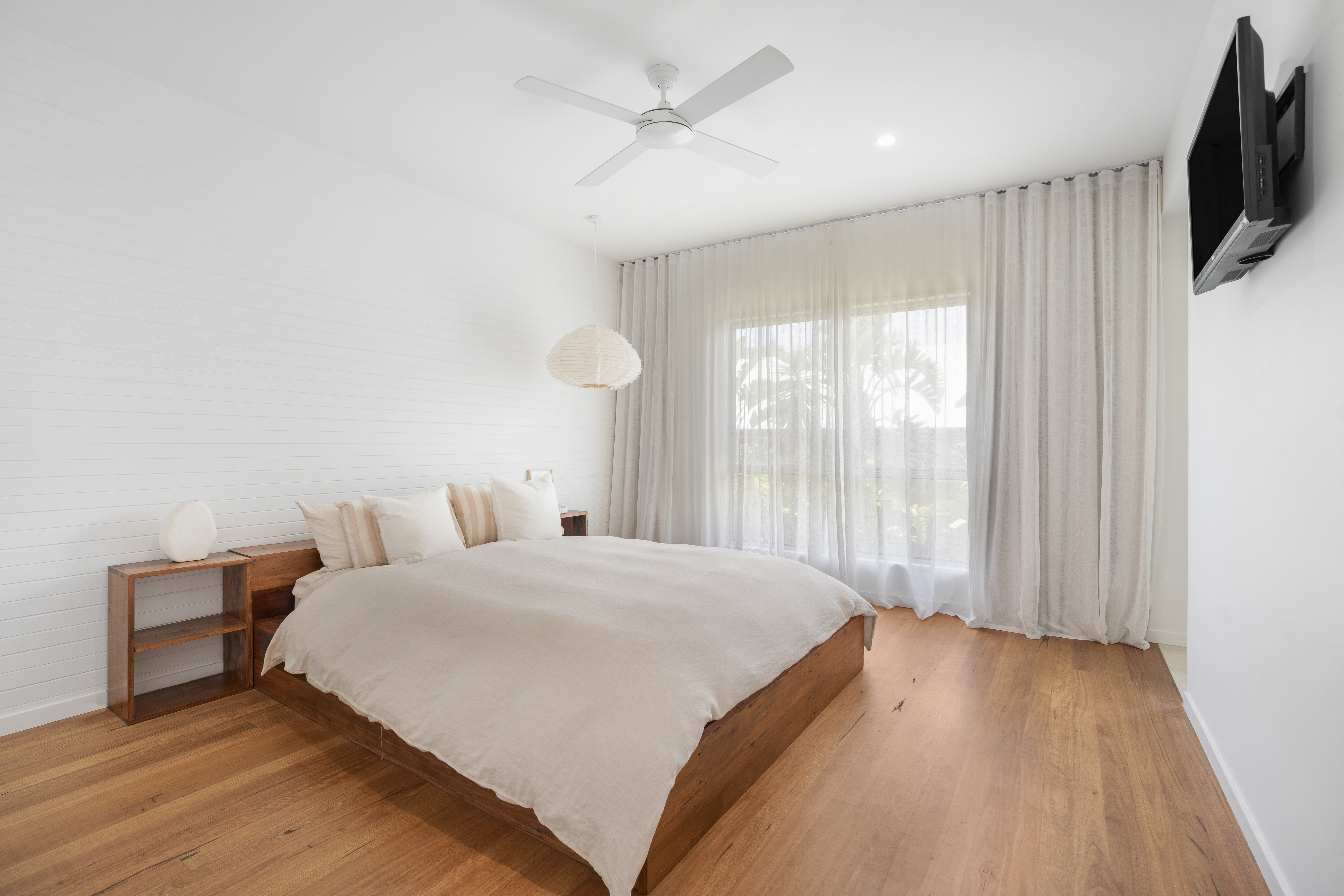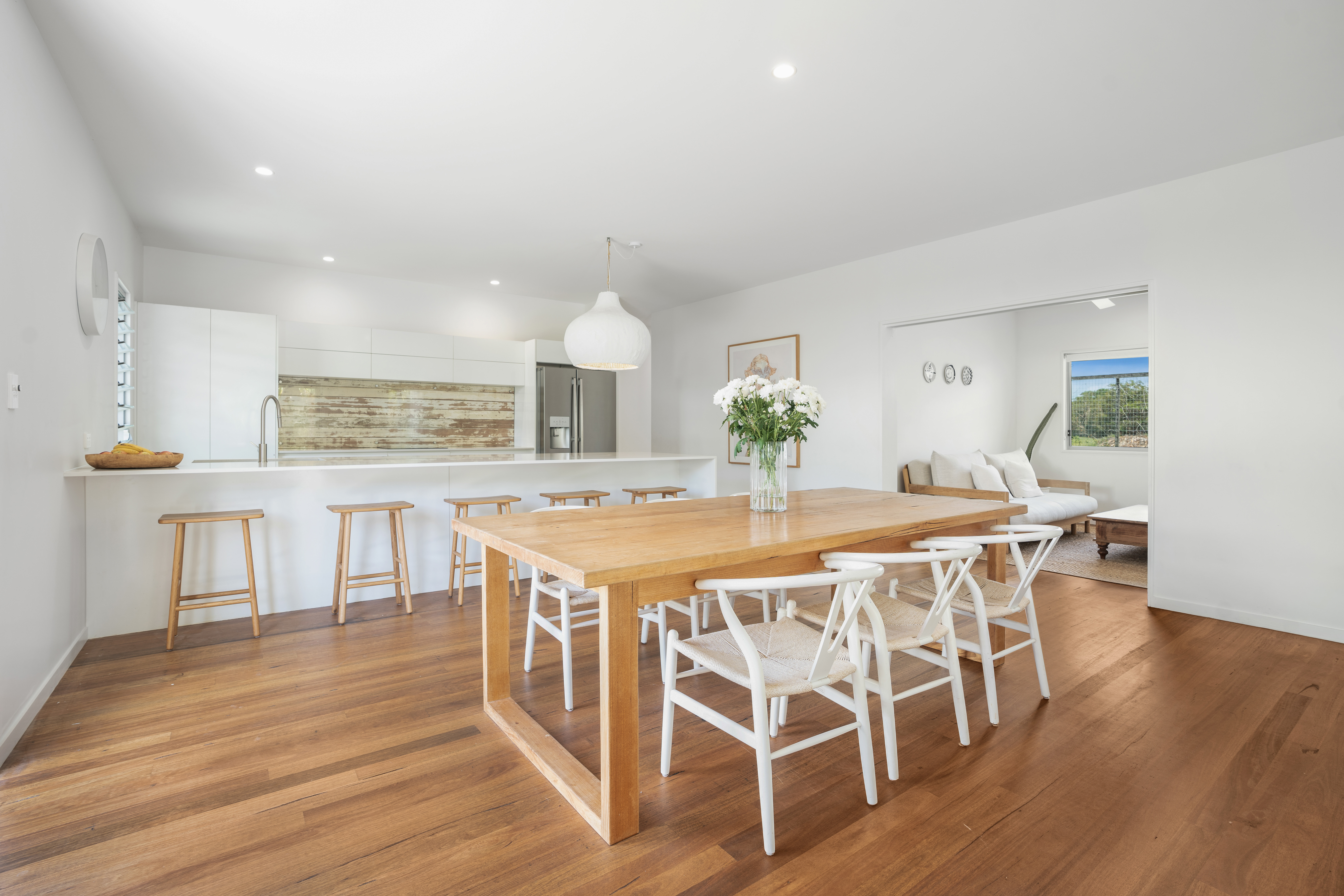 Experience the pinnacle of Mudjimba’s modern architectural movement at 3 Sunshine Close. This meticulously maintained residence represents a sophisticated blend of minimalist design and coastal warmth. Set on a private close, the home is defined by its clean lines—highlighted by square-set ceilings and floor-to-ceiling sheer curtains that create an atmosphere of effortless elegance only a short walk to the beach.