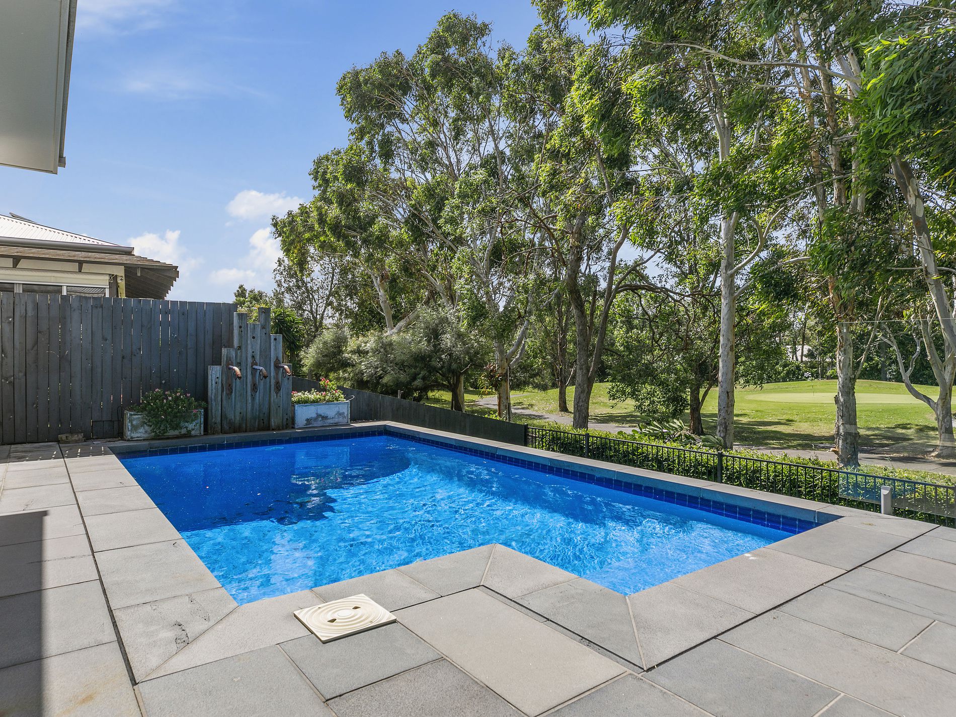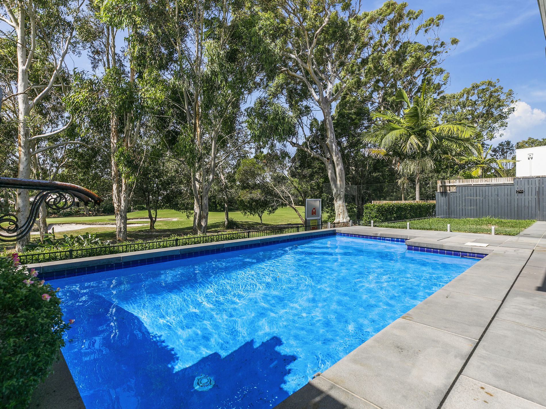 The generous chefs kitchen complete with a spacious walk in pantry, stone benchtops and expansive centre island is flanked by 2 separate living areas that both spill to the rear entertaining zone. Protected from weather and prevailing winds, the alfresco room boasts an authentic wood fire pizza oven perfect for year round dining and entertaining ... the perfect compliment to the already clever open plan entertaining hub of the home. With views over the sparking inground pool to the fairways beyond, this sensational home has been designed with privacy and lifestyle a focus.
